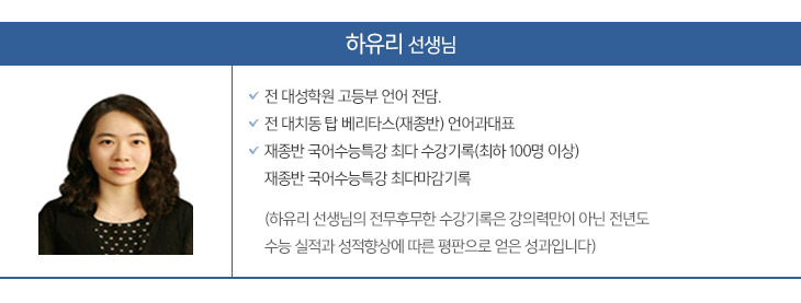 » 하유리 선생님- 겨울방학 예비고3 수능국어 기초 시작반 file edufirst 2015.12.06
