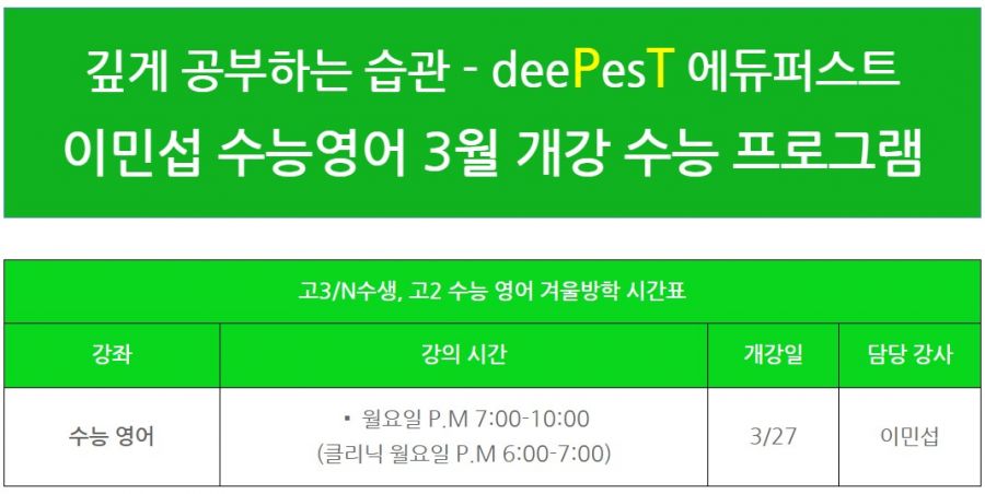 [대치동 에듀퍼스트학원] deePesT 수능 과탐 겨울방학 개강반