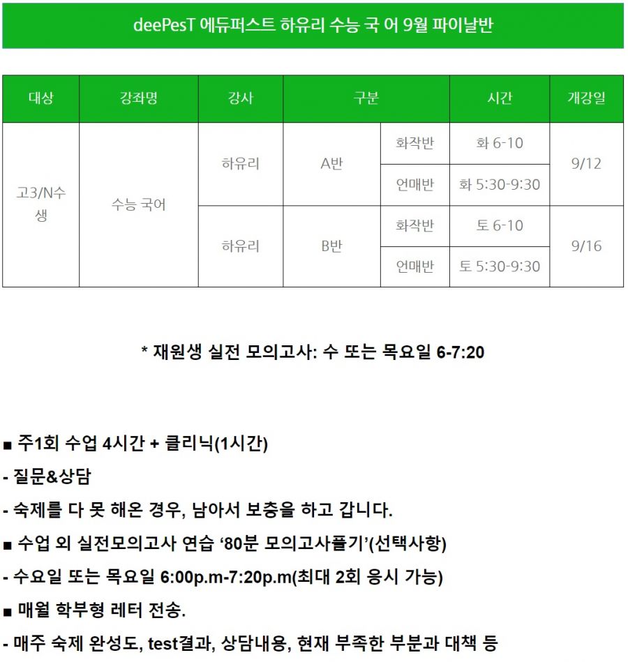 20. 하유리수능국어 9월 파이날반/ 중/고 국어 학교별 내신대비
