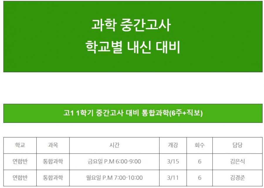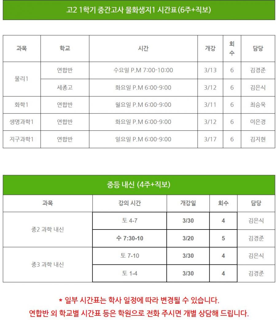 25 수능대비 수능 과탐 1학기 프로그램(3월)