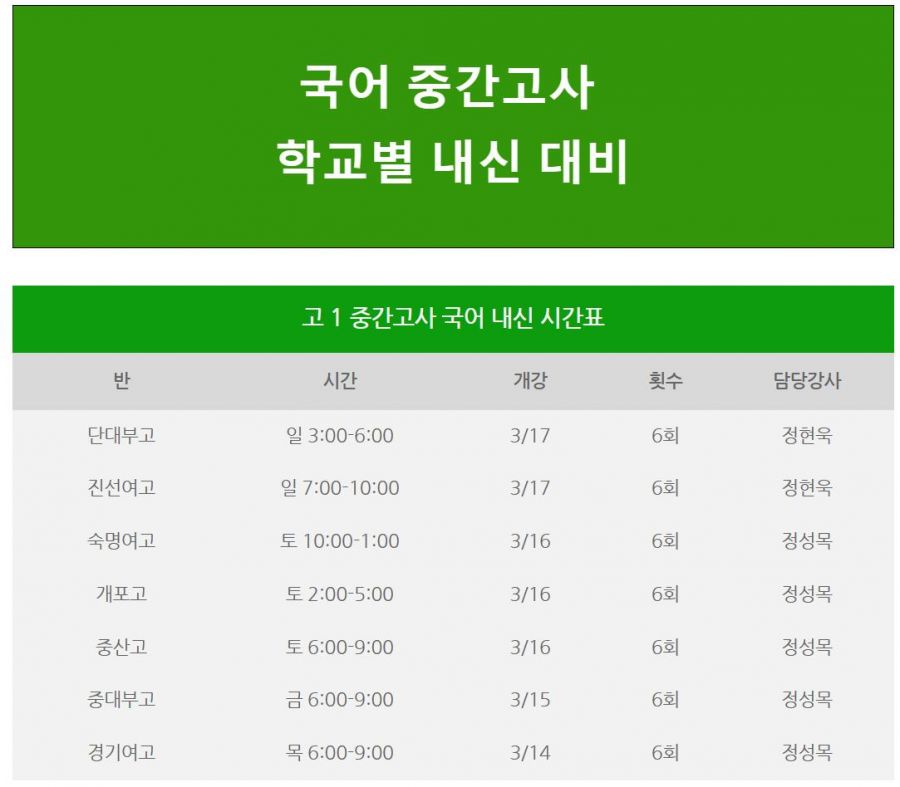 국어 학교별 기말 내신대비