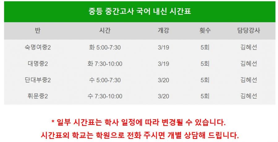 국어 학교별 중간고사 대비