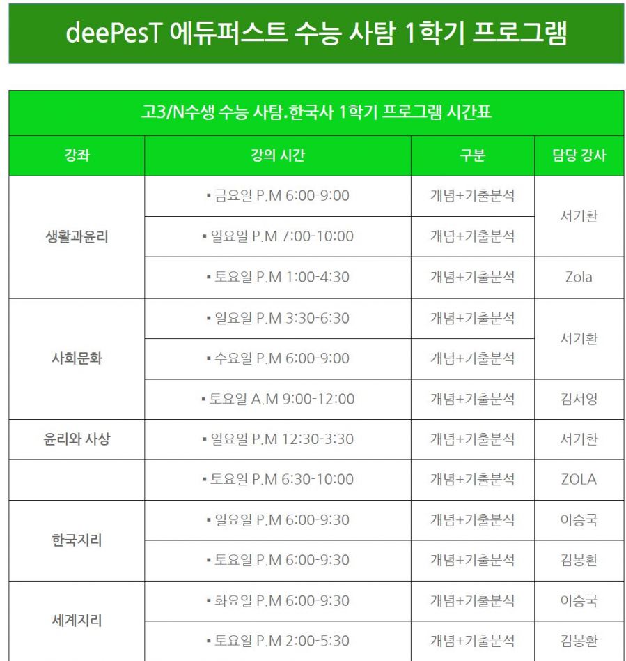 25 수능대비 수능 과탐 1학기 프로그램(3월)