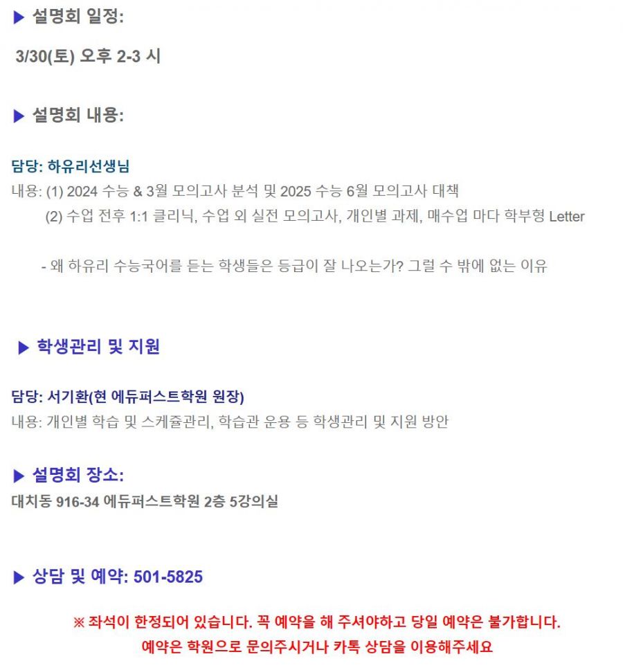 2025 수능대비 입시설명회 안내