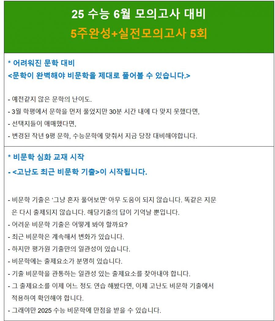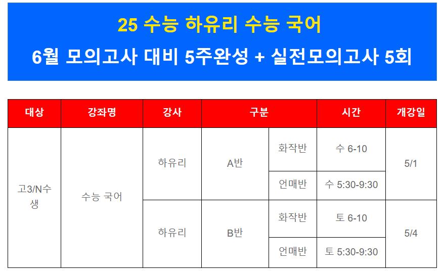 25 수능 9월 모의고사대비 하유리 수능국어 6월 개강반