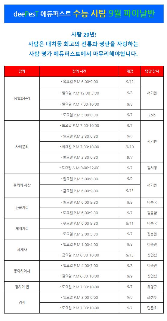 25수능대비 수능 사회탐구 9월 개강 파이날반